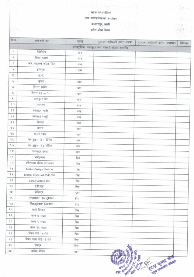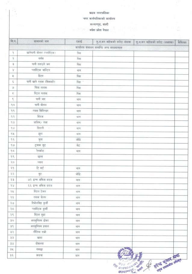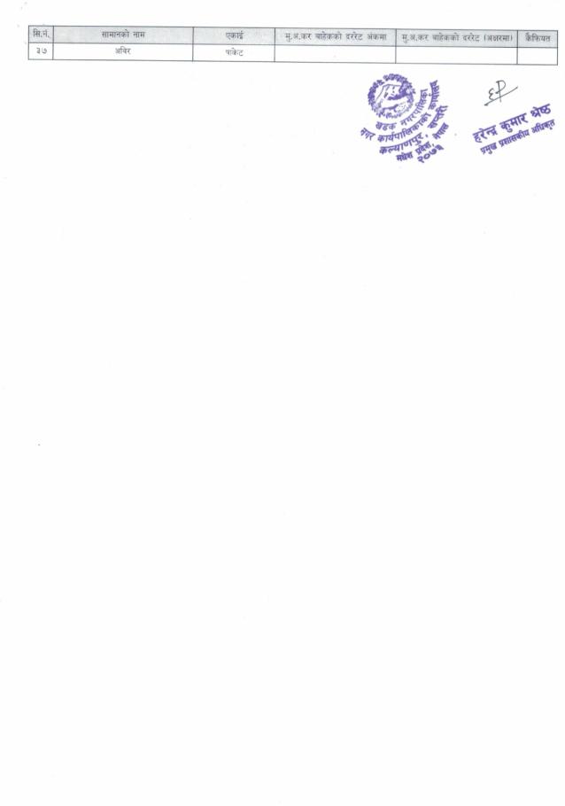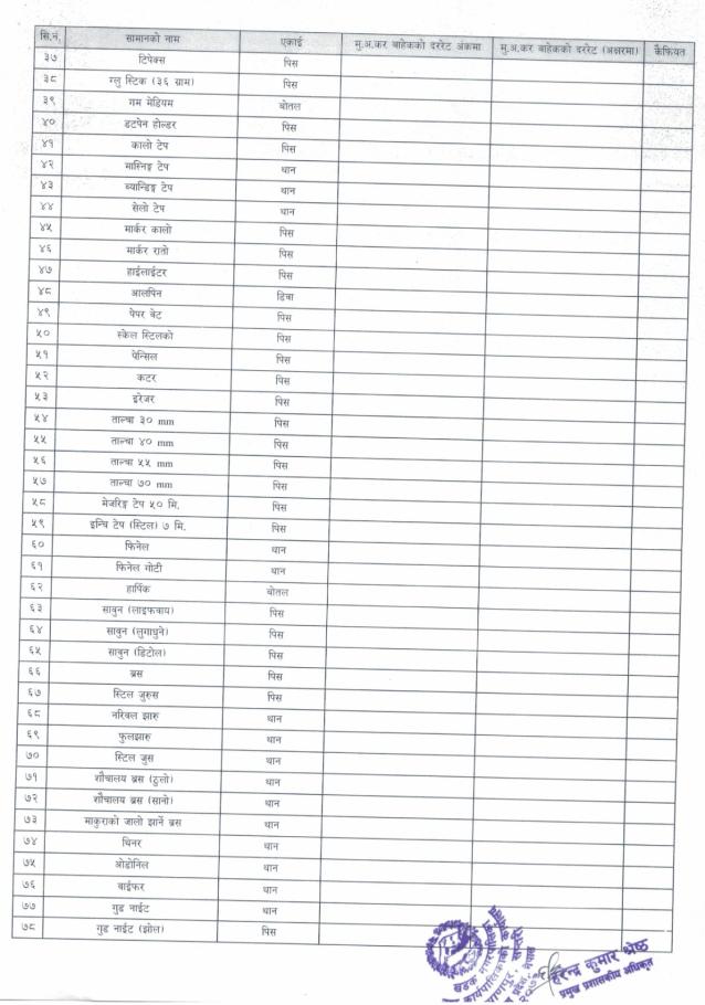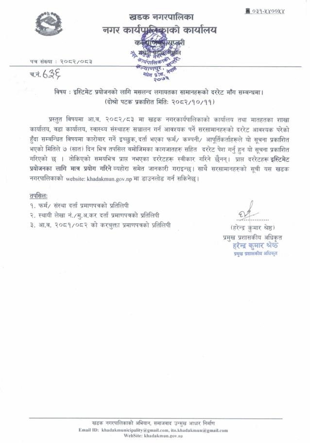 इस्टिमेट प्रयोजनको लागि मसलन्द लगायतका सामानहरूको दररेट माँग सम्बन्धमा (दोश्रो पटक प्रकाशित सूचना)