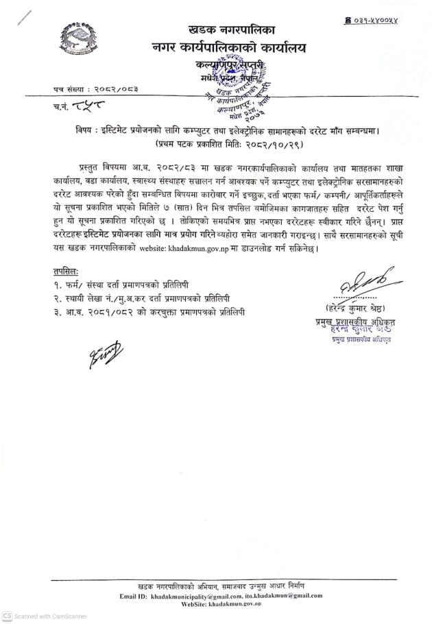 ईस्टिमेट प्रयोजनको लागि कम्प्युटर तथा ईलेक्ट्रोनिकस्स सरसमानहरुको दर रेट माँग सम्वन्धमा ।