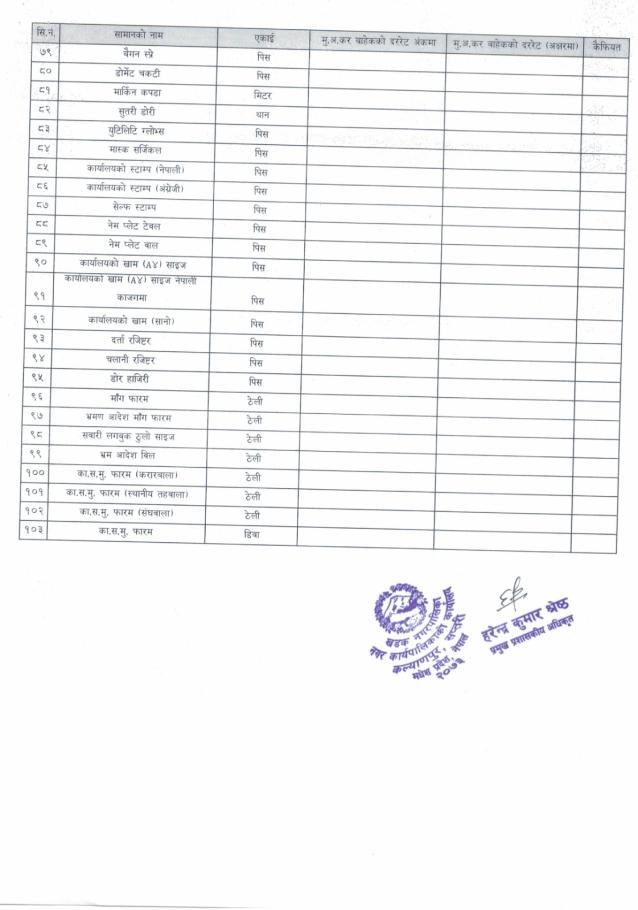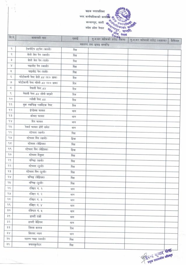 इस्टिमेट प्रयोजनको लागि मसलन्द लगायतका सामानहरूको दररेट माँग सम्बन्धमा (दोश्रो पटक प्रकाशित सूचना)