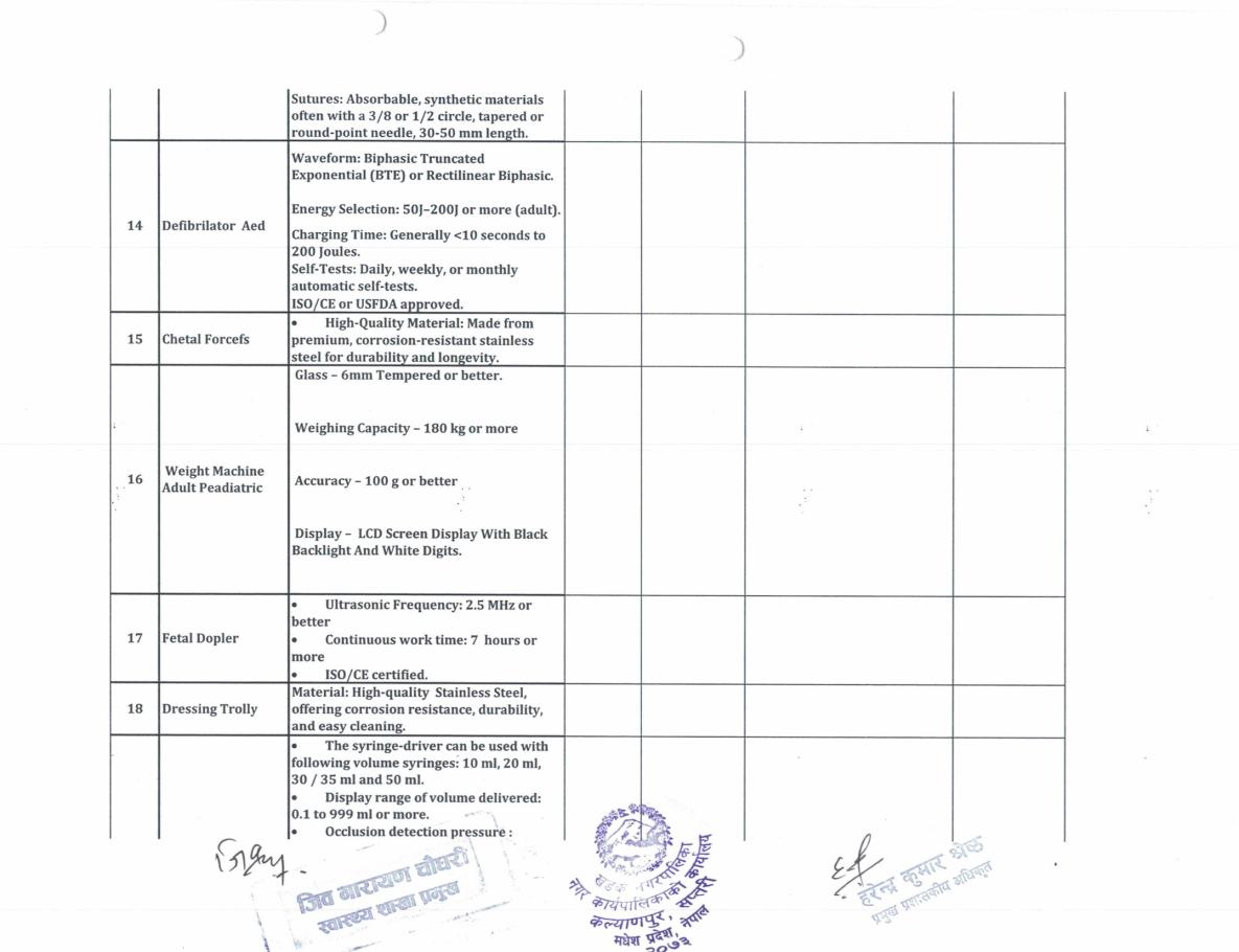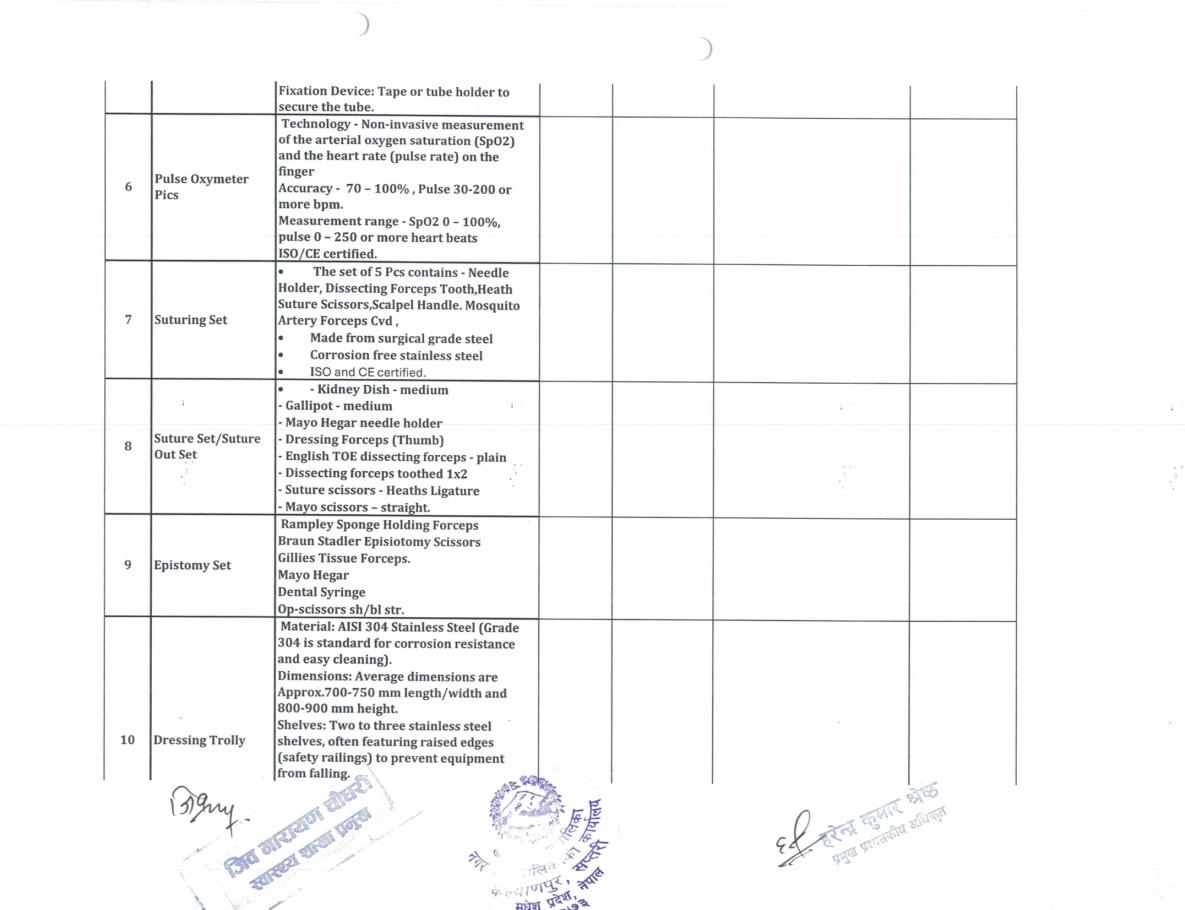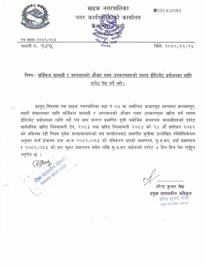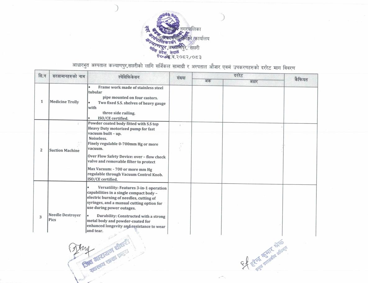 ईस्टिमेट प्रयोजनको लागि दर रेट पेश गर्ने सम्वन्धी सूचना (सर्जिकल सामान र अस्पतालको औजार)